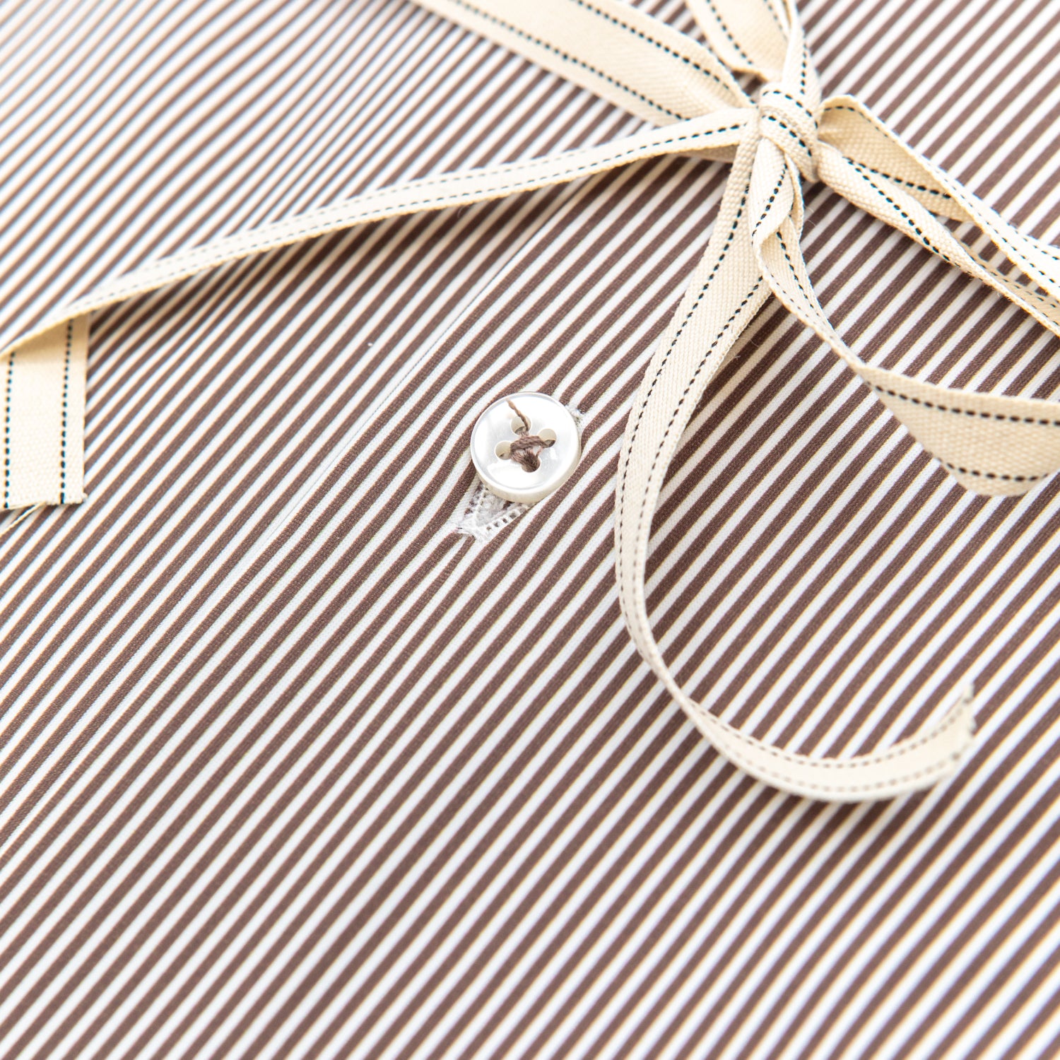 Camicia Alessandro Lamura con raffinata fantasia a righe sottili marroni e bianche. Un capo essenziale dal gusto intramontabile, ideale per chi ama uno stile pulito e ricercato. Realizzata in morbido cotone italiano, garantisce comfort e traspirabilità, perfetta per l’ufficio o per il tempo libero abbinata a denim o pantaloni chino.