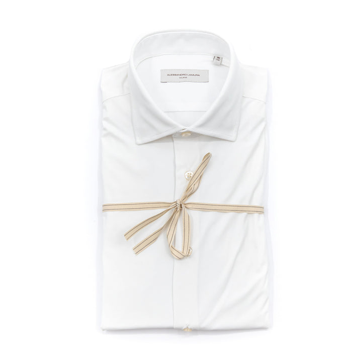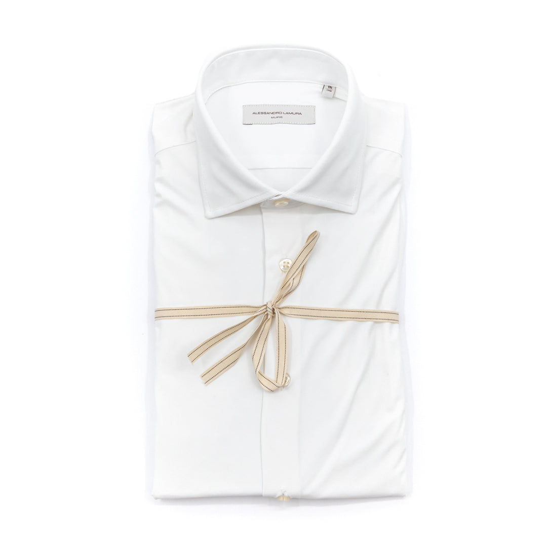 Una camicia bianca essenziale e impeccabile, simbolo di eleganza senza tempo. Realizzata in pregiato cotone satin, offre una texture morbida e una lucentezza discreta che valorizza ogni outfit. Perfetta sotto una giacca o indossata da sola per uno stile pulito e raffinato. Firmata Alessandro Lamura Milano, è il capo must-have del guardaroba maschile.