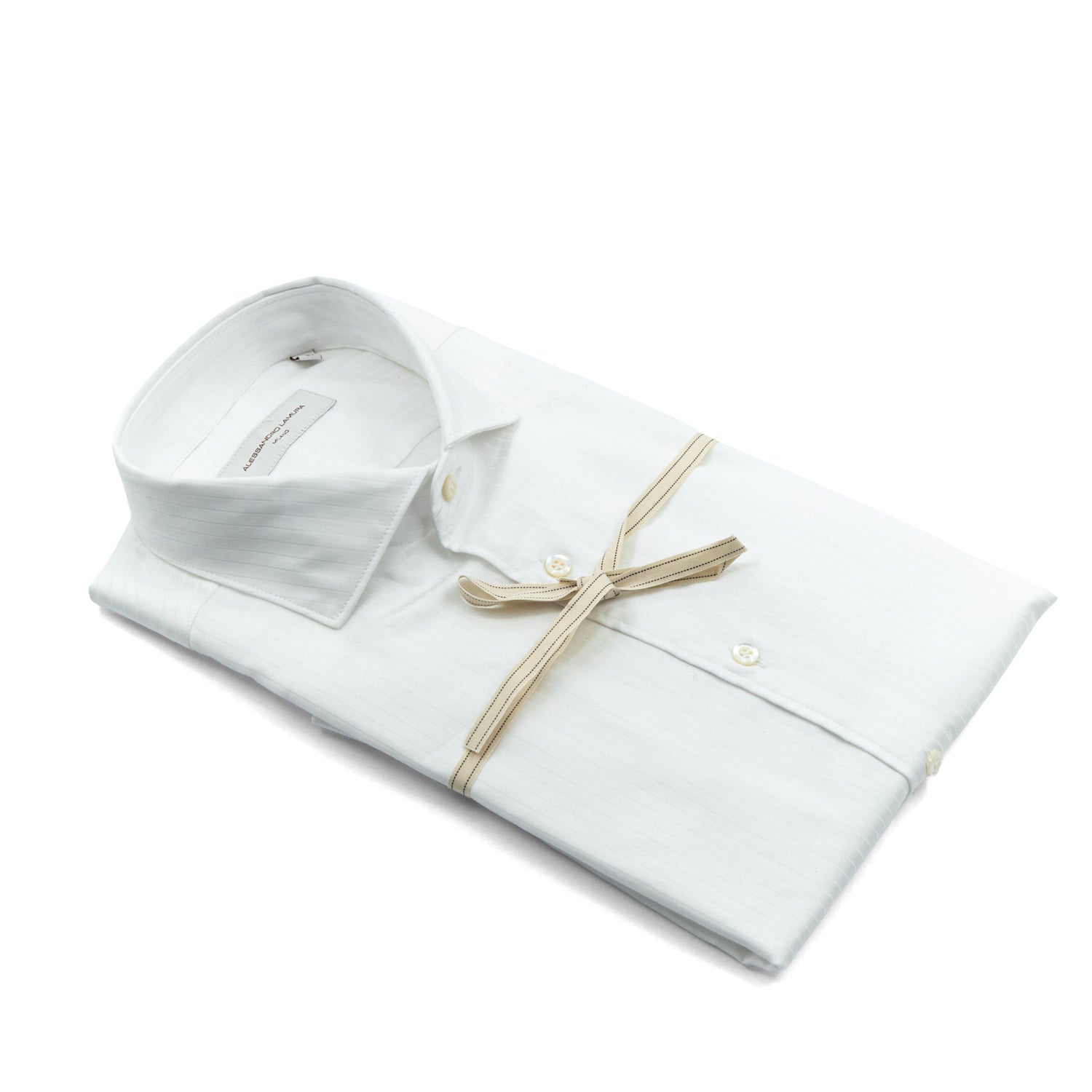 Eleganza discreta e raffinatezza senza tempo definiscono questa camicia bianca firmata Alessandro Lamura Milano. Realizzata in tessuto leggero con sottili righe tono su tono, offre un effetto raffinato e sofisticato che valorizza il classico bianco. Il design pulito, abbinato a un colletto strutturato e bottoni coordinati, la rende perfetta per contesti formali e look business. Versatile e impeccabile, è ideale anche per cerimonie o occasioni eleganti, garantendo sempre uno stile curato e distintivo.