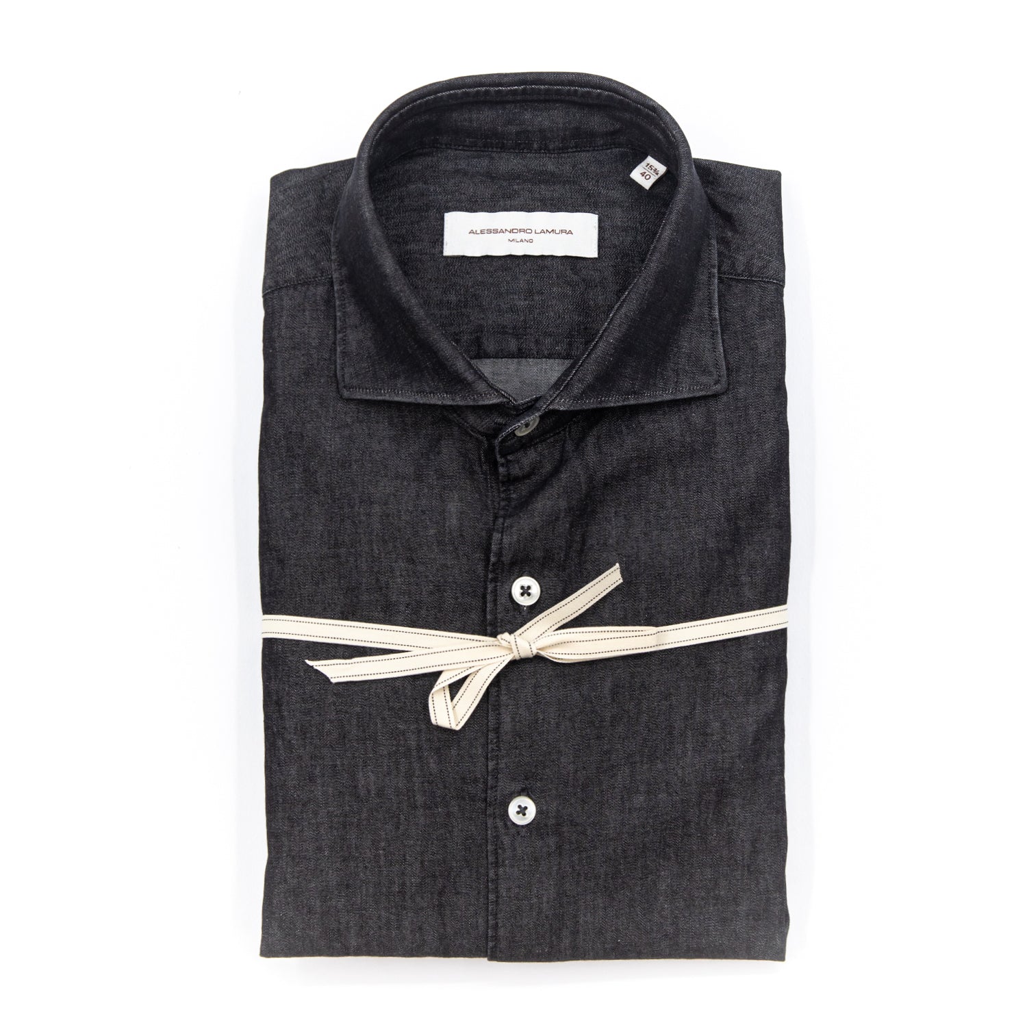 Un capo dal fascino urbano e raffinato. La camicia Alessandro Lamura in denim nero è realizzata in cotone morbido con una leggera texture vissuta che la rende perfetta per ogni stagione. Il tessuto compatto e la linea pulita si combinano con dettagli sartoriali come i bottoni in madreperla e il colletto rigido, per un look elegante ma dal carattere deciso.