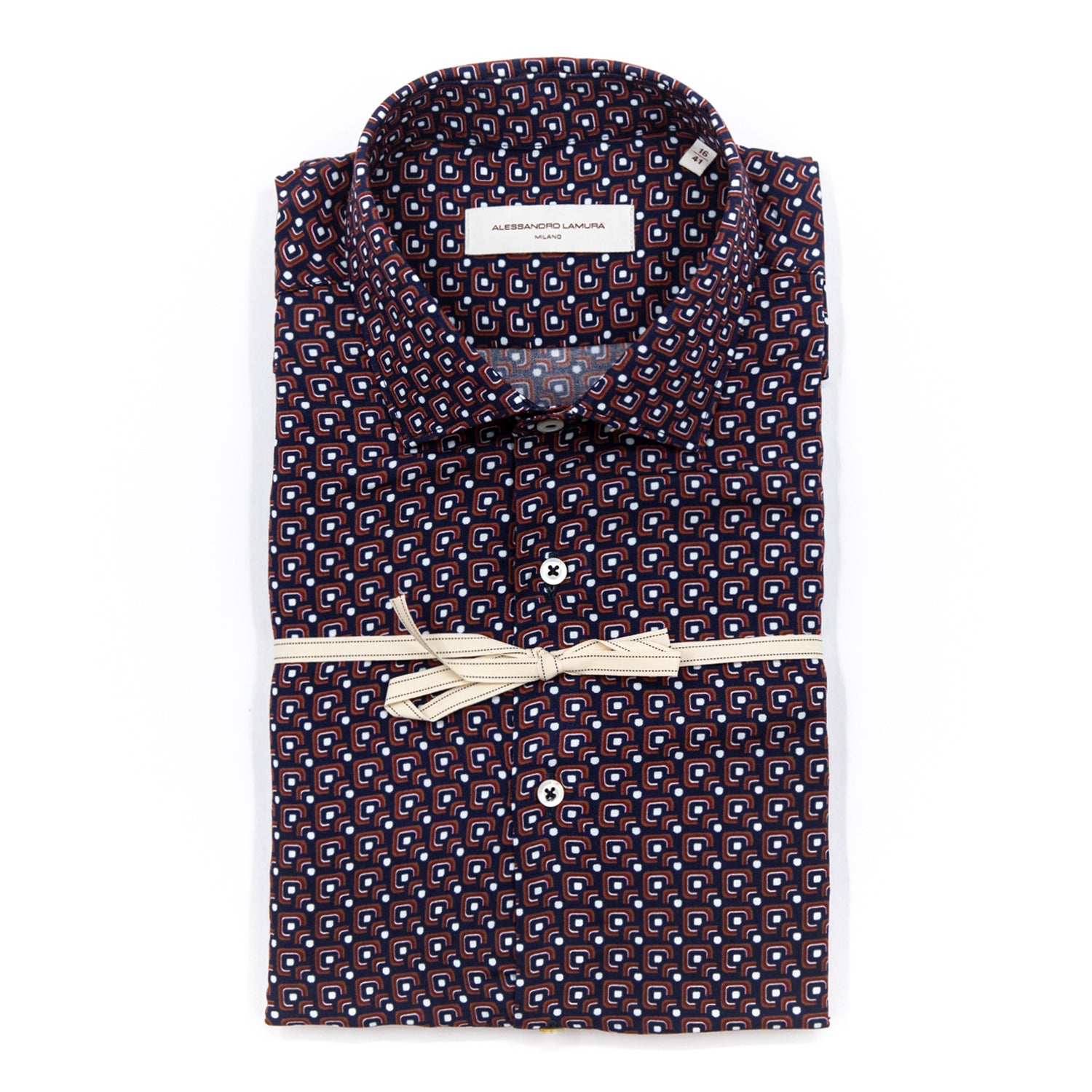 Aggiungi carattere al tuo look con questa camicia uomo firmata Alessandro Lamura, realizzata in un raffinato tessuto a fantasia geometrica nei toni del bordeaux, blu e bianco. Il design moderno è valorizzato dai bottoni in madreperla e dalla vestibilità confortevole, ideale sia per outfit casual che più ricercati. Una camicia versatile, ricca di stile e perfetta per distinguersi con eleganza.