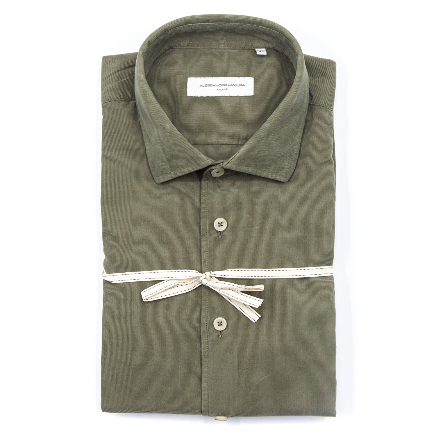 La camicia Alessandro Lamura in velluto a coste verde oliva è il capo ideale per chi desidera un look caldo, sofisticato e ricercato durante la stagione autunno-inverno. Il velluto a coste sottili dona texture, eleganza e un comfort avvolgente, perfetto sia per outfit casual che per abbinamenti più raffinati.