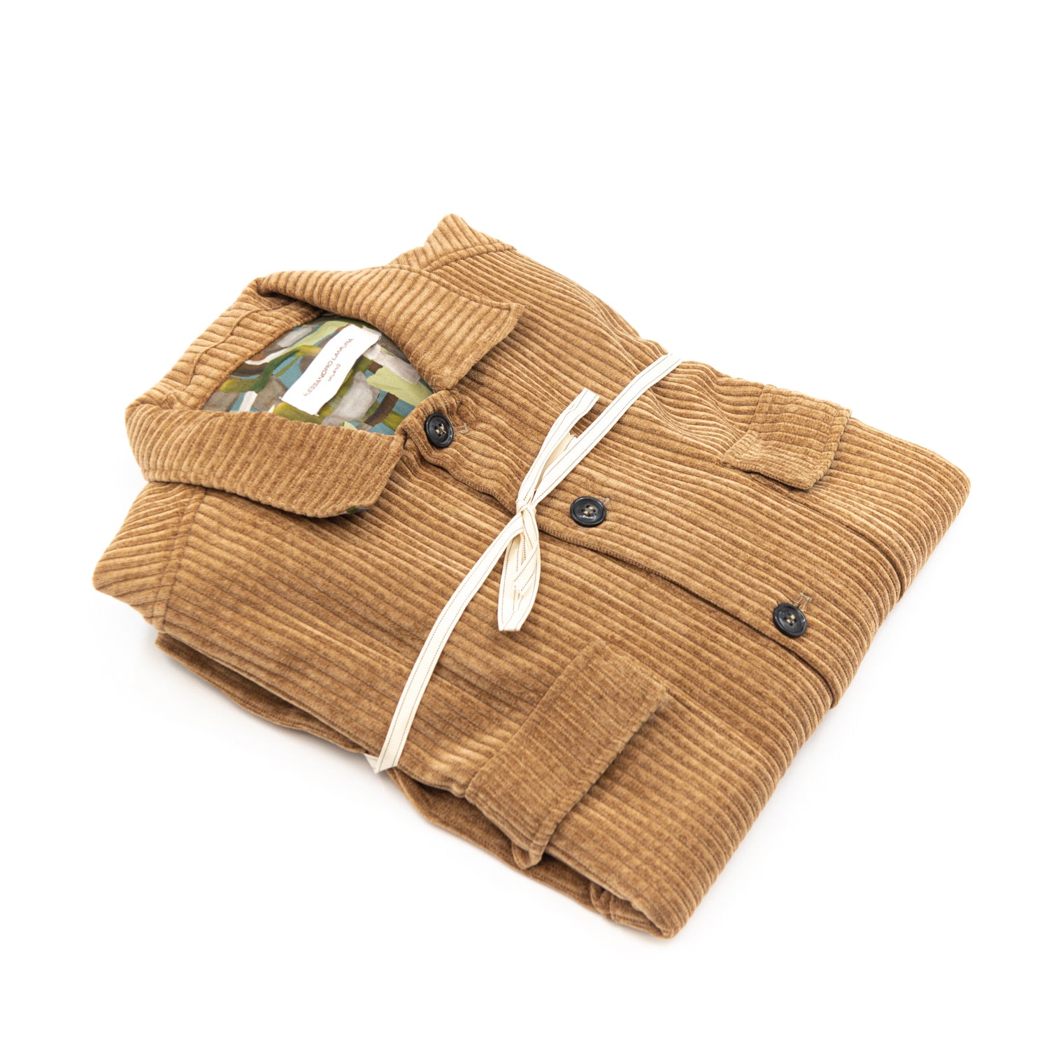Questa giacca-camicia Alessandro Lamura in velluto a coste color cammello è un capo caldo, elegante e ricercato, perfetto per la stagione autunno-inverno. Il velluto a coste larghe dona un effetto morbido e strutturato, mentre l’interno a fantasia artistica multicolore aggiunge un tocco distintivo e raffinato al design.