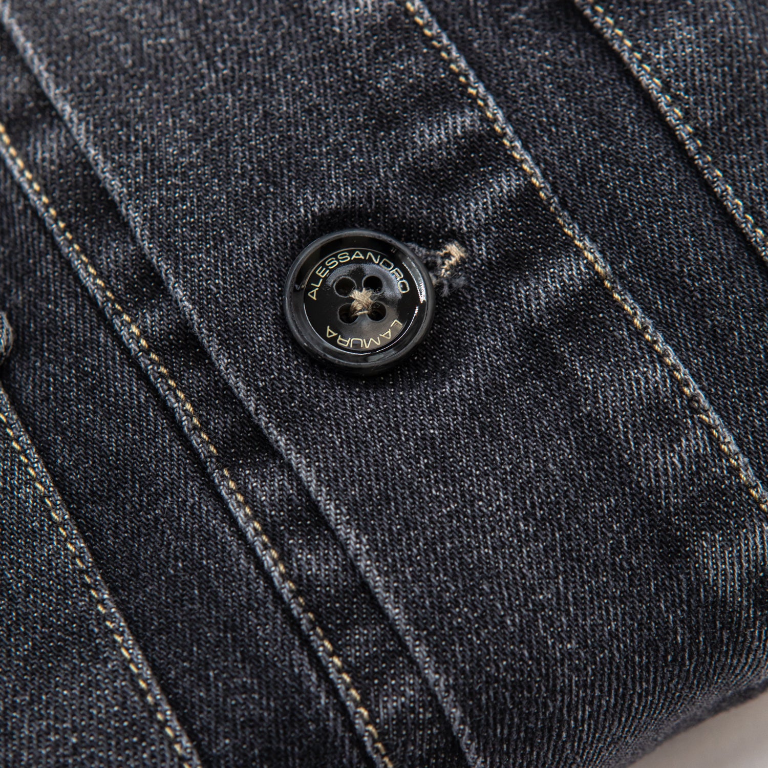 Un grande classico reinterpretato in chiave moderna. La shirt jacket Alessandro Lamura in denim nero slavato combina l’anima casual del jeans con linee pulite e dettagli sartoriali. Il tessuto morbido e leggermente elasticizzato garantisce comfort e vestibilità impeccabile, perfetta per ogni stagione.