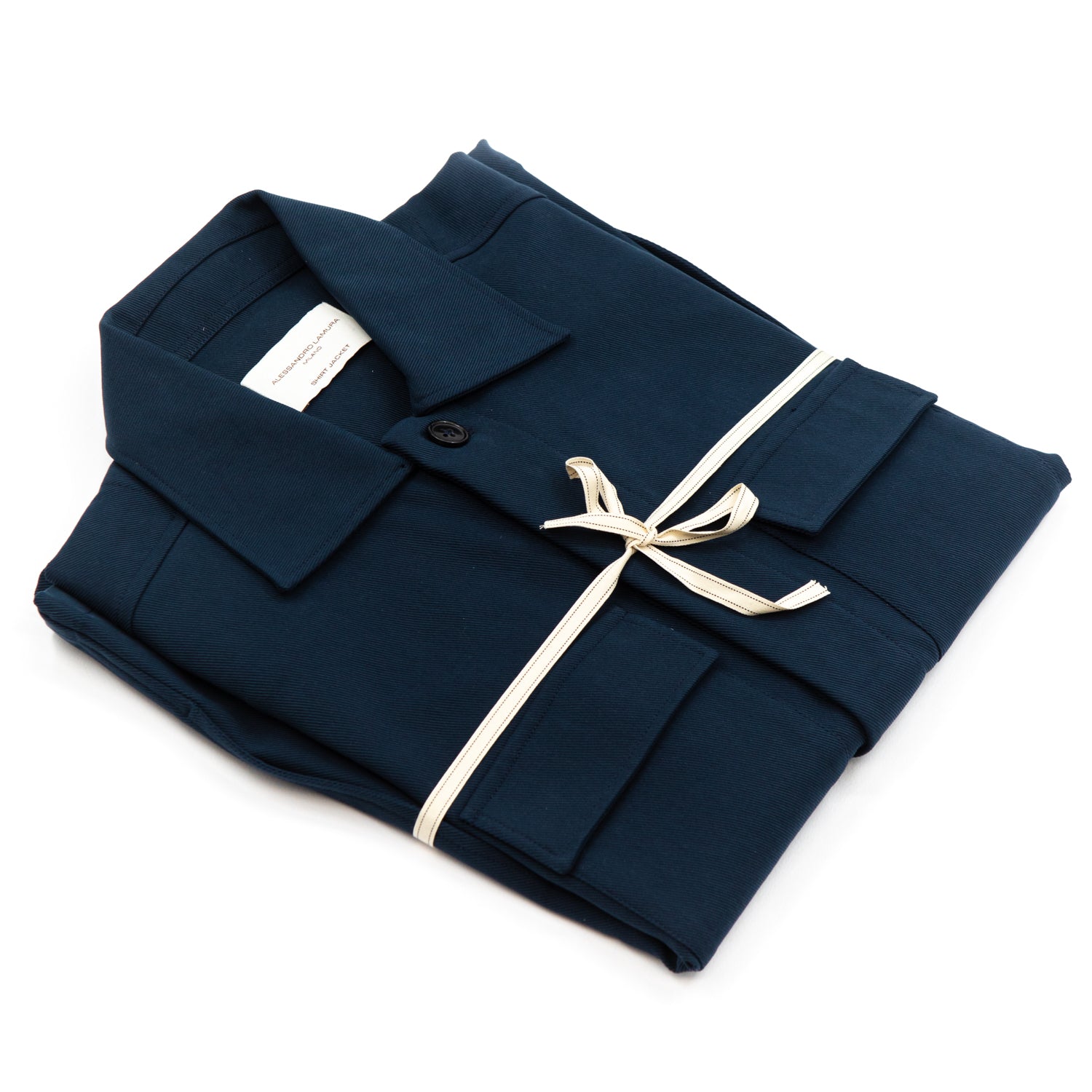 Un capo intramontabile dal carattere sofisticato. La shirt jacket Alessandro Lamura è realizzata in gabardina di cotone blu navy, un tessuto compatto e resistente con una mano morbida e un’elegante finitura opaca. Il design essenziale e le linee pulite la rendono perfetta per un look contemporaneo e versatile.