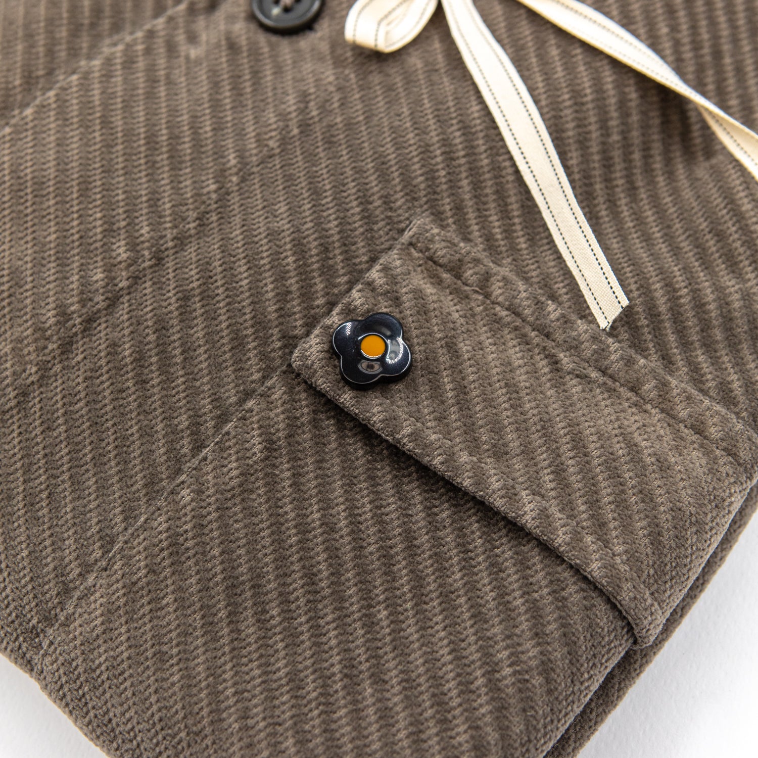 Eleganza casual e dettagli ricercati si incontrano in questa shirt jacket firmata Alessandro Lamura. Realizzata in velluto diagonale marrone, offre una mano morbida e un look sofisticato ma disinvolto. L’interno presenta una fodera con stampa tropicale tono su tono, che dona carattere e originalità al capo.